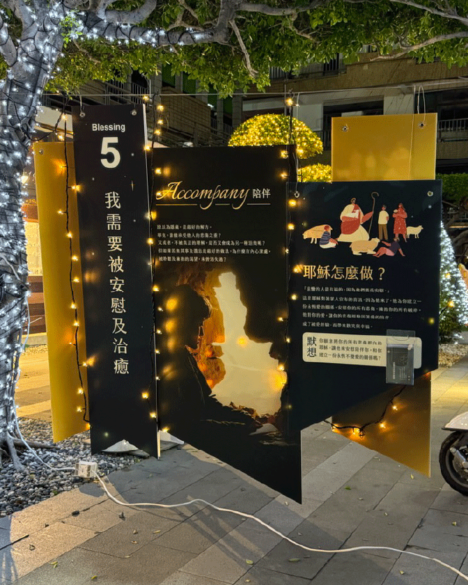 - 展示布置與互動區: 規劃祝福卡展示區,讓參觀者可以寫下自己的願望與需要的祝福(如:我需要平安及醫治),並將其懸掛展示,形成展覽的一部分互動風景 。
