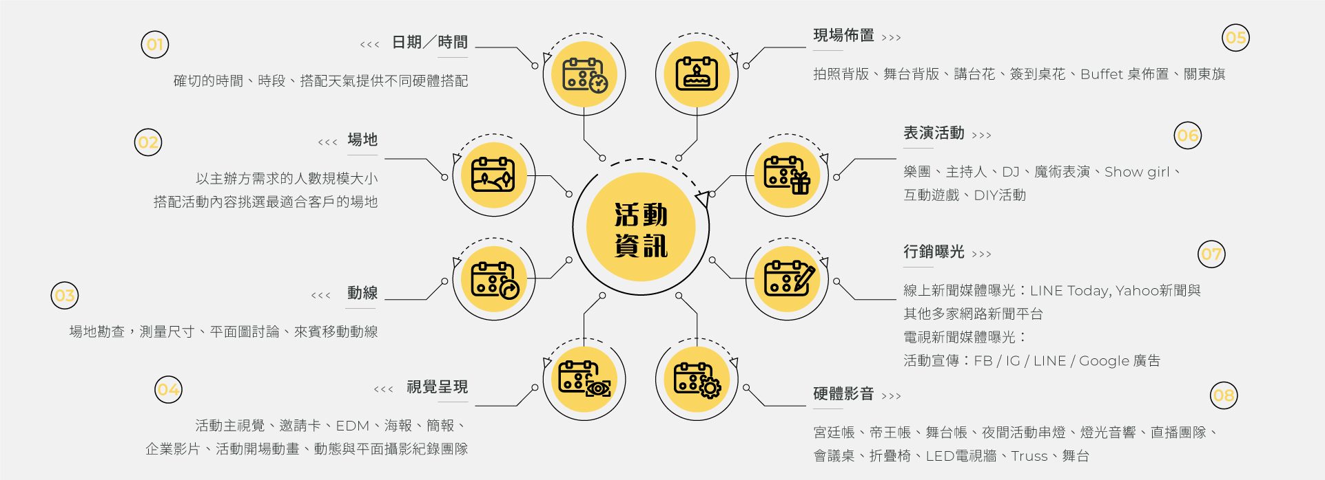 我們從視覺設計至活動線規劃,時間掌控,軟硬體配置與進撤場,